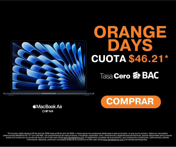 24 meses Tasa 0 BAC - Disponible en toda la tienda virtual. Ver promociones