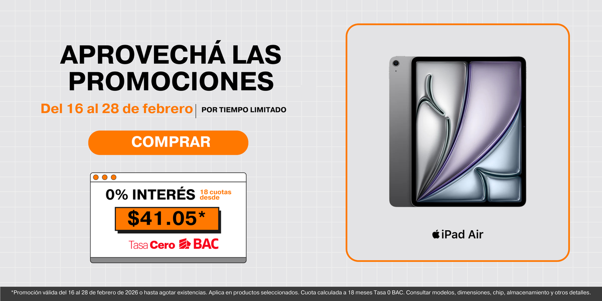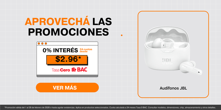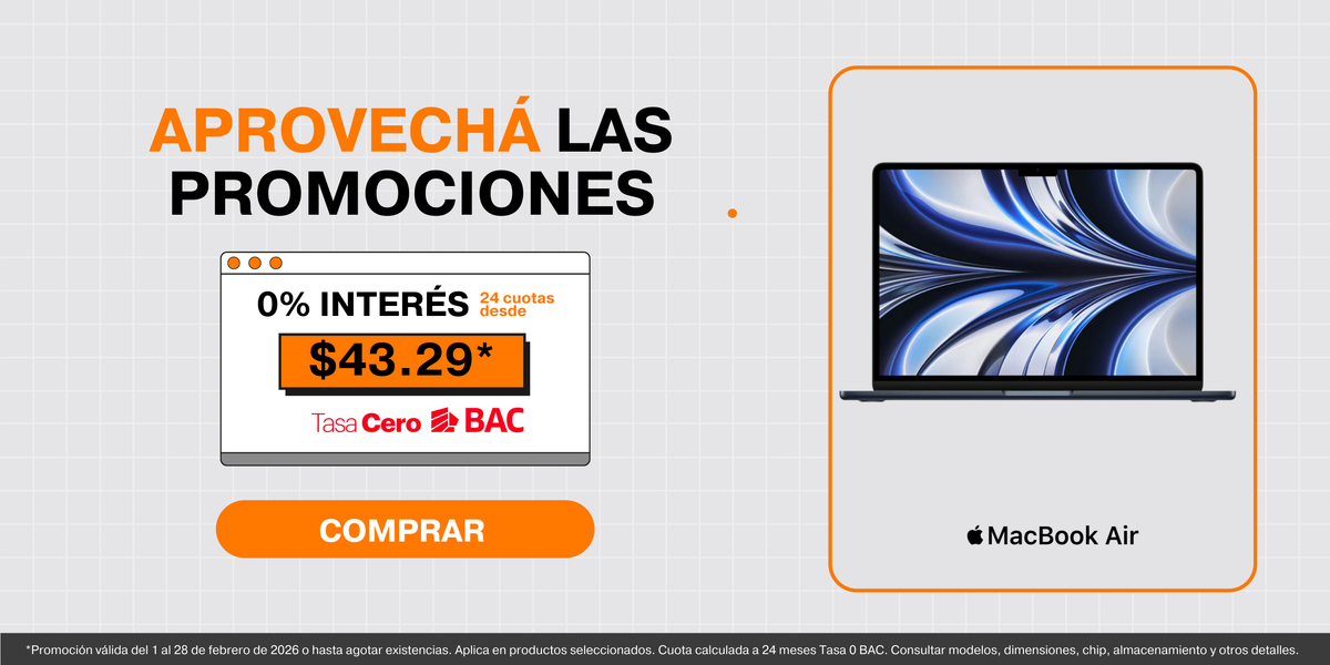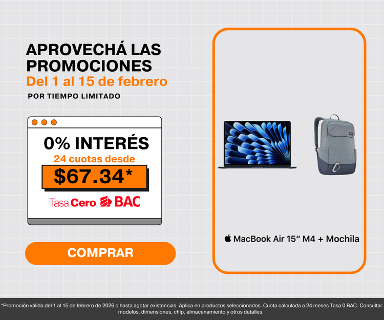 - Financiamiento hasta 24 meses tasa 0 con BAC, ideal para estudiantes y profesionales.