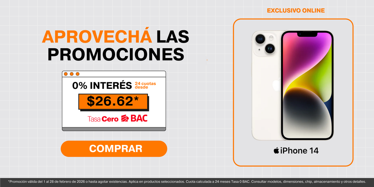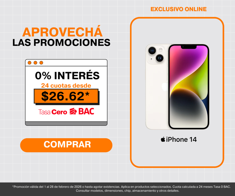 - Financiamiento hasta 24 meses tasa 0 con BAC, para facilitar tu compra.