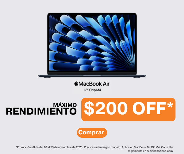 Descubrí toda la potencia y eficiencia de la nueva MacBook Air con el revolucionario Chip M4, diseñada para aprovechar al máximo Apple Intelligence. Rendimiento increíble, diseño ultra portátil y disponible ya en iShop Costa Rica, tu tienda Apple autorizada. ¡Sé de los primeros en tenerla! Asegurá la tuya hoy mismo.