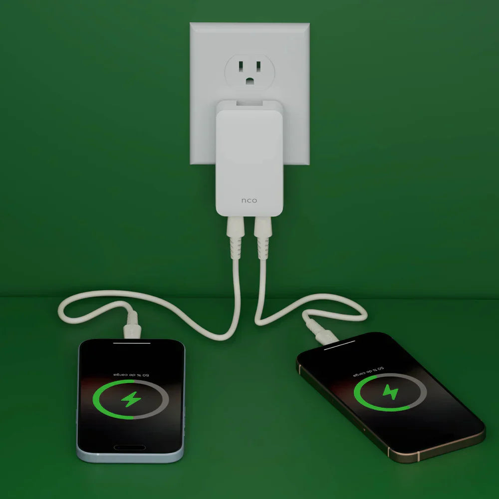 Dos puertos USB-C para carga simultánea de múltiples dispositivos.
