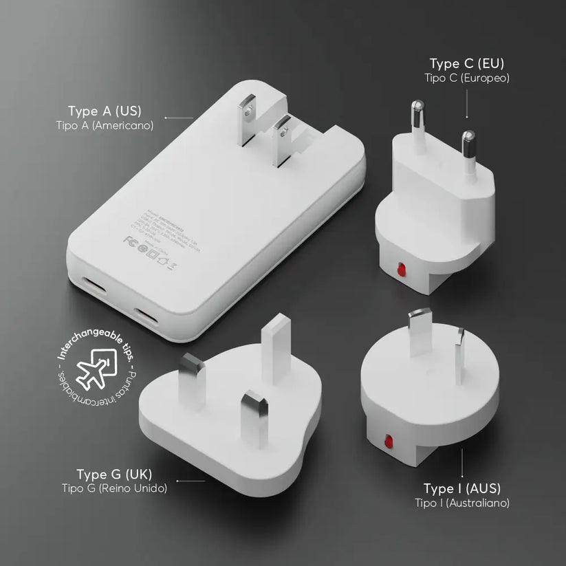 Versión Travel con adaptadores incluidos para enchufes de Estados Unidos, Europa y Australia.