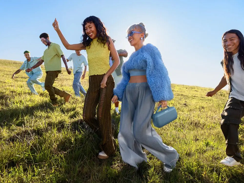 Este altavoz Bluetooth® portátil ofrece un sonido estereofónico épico que prende el ambiente de la fiesta. La gente escucha la música y la siente de pies a cabeza.