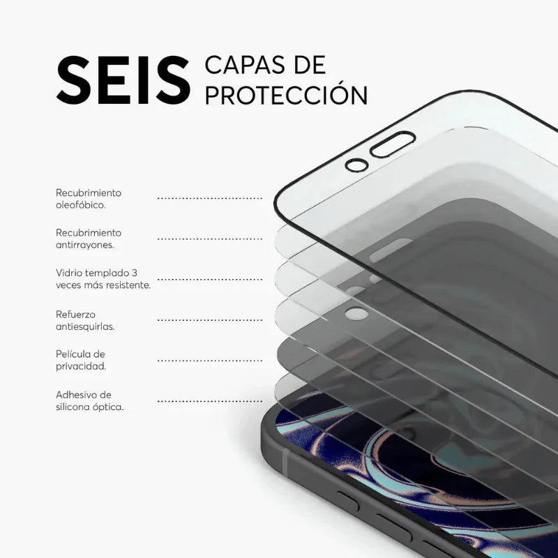 Dale a tu iPhone la máxima defensa y tranquilidad que necesita. PrivacyGuard protege tu pantalla de golpes, rayones y ojos curiosos. Todo lo que necesitas para mantener tu iPhone y tu información a salvo.