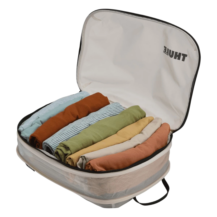 Organiza tu maleta con eficiencia y estilo gracias al Set de Compresión Thule. Su diseño en color blanco incluye dos cubos de embalaje (pequeño y mediano) que maximizan el espacio y mantienen tus pertenencias ordenadas.