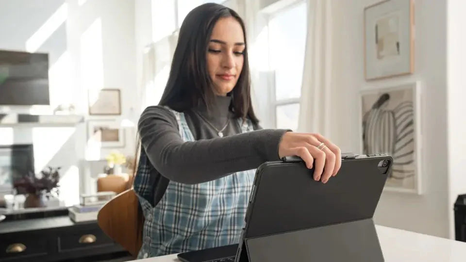 El teclado y la funda Pro Keys 2 transforman tu iPad en una eficiente estación de trabajo para que puedas ser productivo dondequiera que vayas. Sus teclas estilo laptop han sido moldeadas y diseñadas para escribir de forma rápida y fácil. Pro Keys 2 tiene un teclado desmontable, capacidades de emparejamiento múltiple, un soporte ajustable y una cubierta tipo folio, teclas retroiluminadas para usarla en condiciones de poca luz y más. Pro Keys 2 es tu solución de teclado/funda para trabajar desde cualquier lugar para tu iPad.